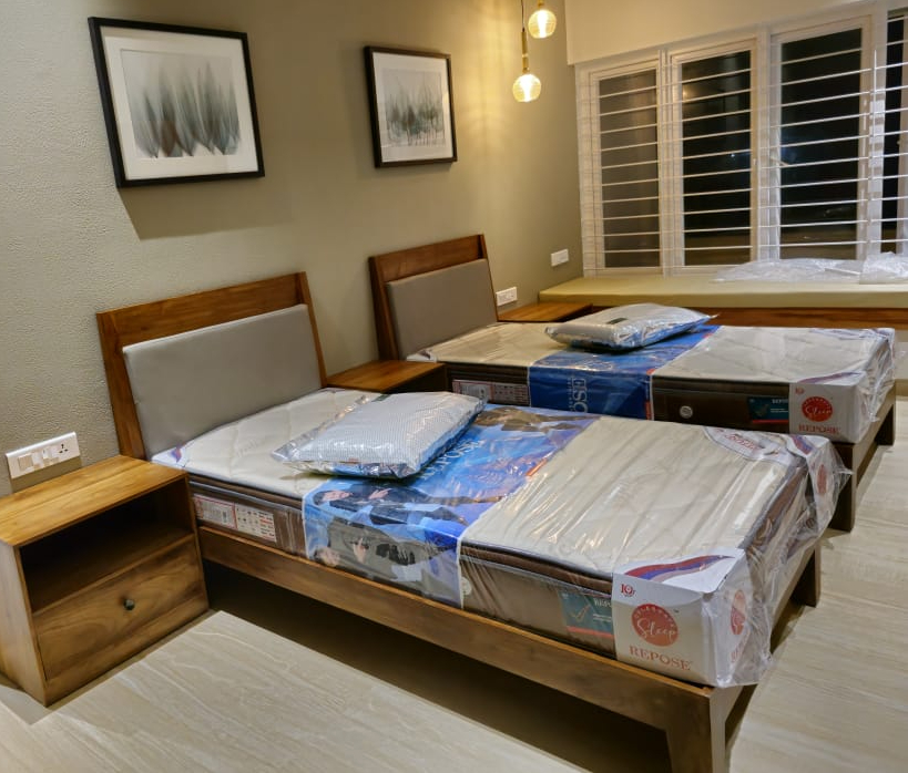 This two elegant beds set offers both comfort and style, perfect for guest rooms or shared spaces. Designed with quality and sophistication, it includes supportive mattresses for a restful night’s sleep.
