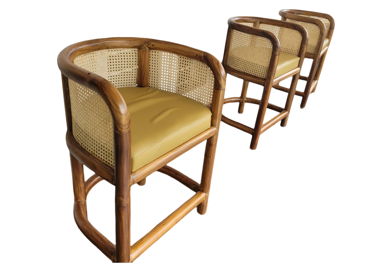 This compact teak wood chair is perfect for small spaces. Its sturdy build and sleek design offer both comfort and timeless style for everyday use.