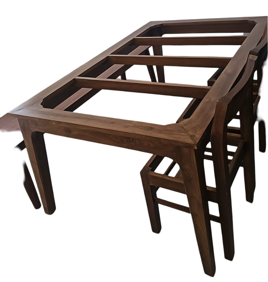 This classic teak dining set features timeless craftsmanship, combining durability and elegance. The natural wood finish adds warmth, making it a perfect centerpiece for family gatherings and formal dining experiences.