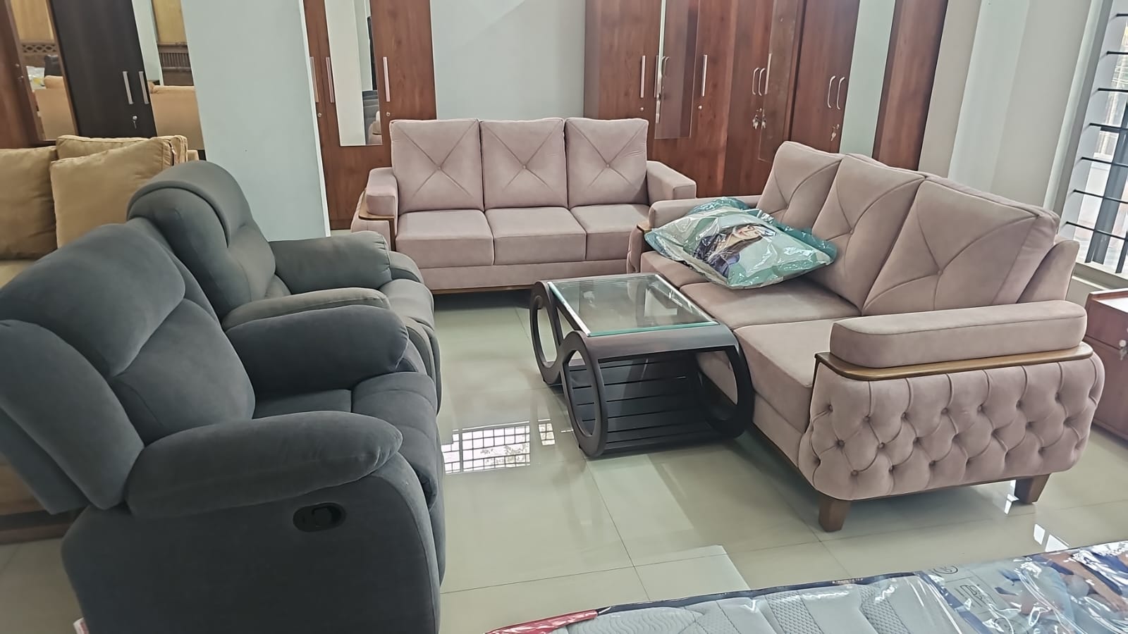 Experience luxury and comfort with this stylish sofa set in boucle white and gray. Built with sturdy teak wood and soft fabric, it adds elegance to any space.