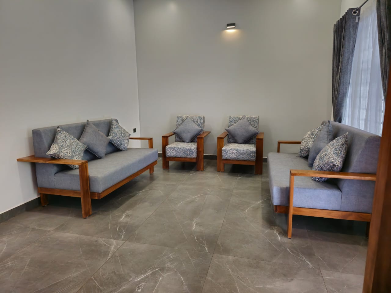 This elegant sofa set in Natural Light Gray is crafted from premium Teak Wood, offering a perfect blend of durability and style. Its modern design enhances any living space, providing comfort and sophistication.