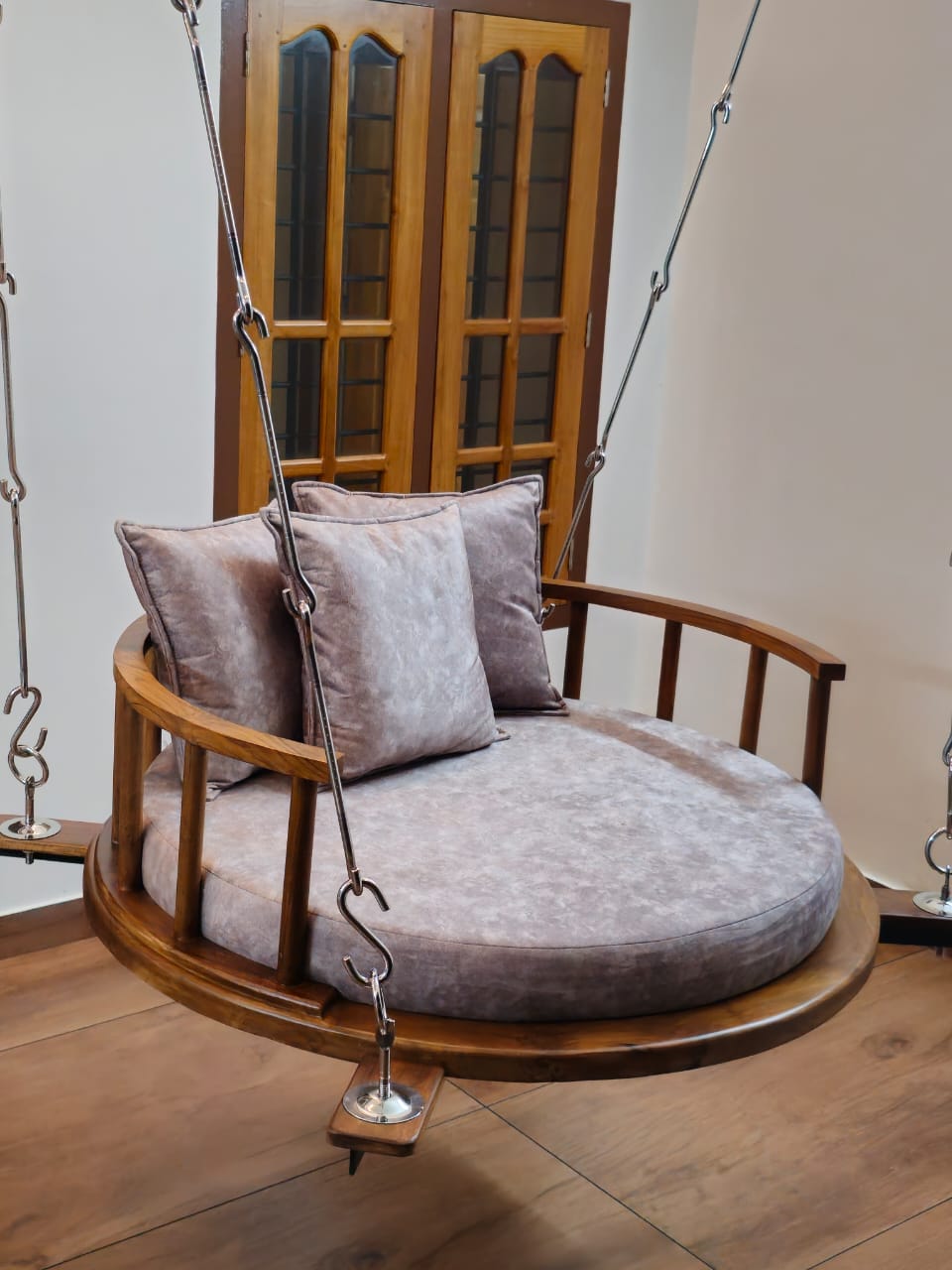 Crafted from solid teak wood, this elegant wooden swing offers timeless charm and exceptional durability. Perfect for indoor or outdoor use, it adds a cozy, traditional vibe to any space.